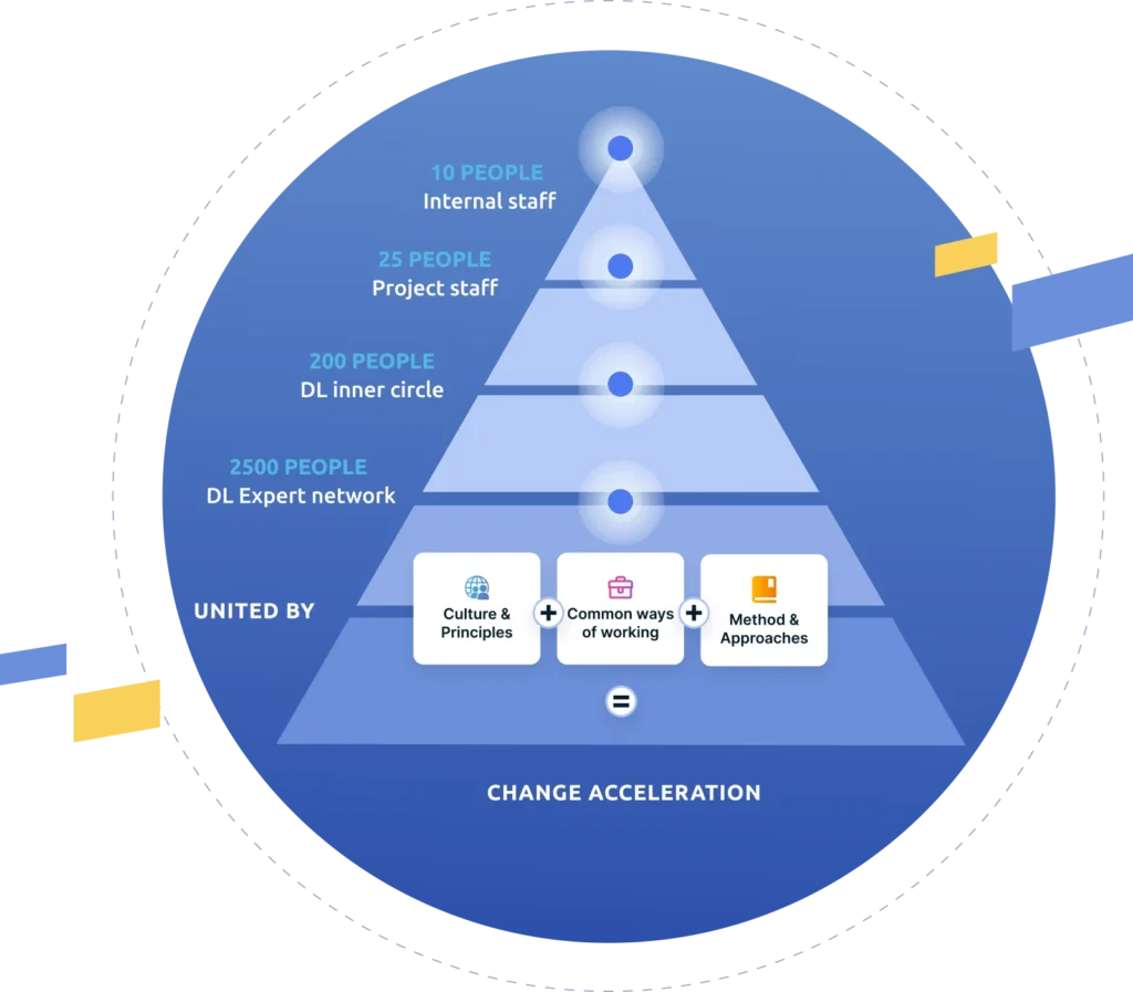 Our senior teams, with 10+ years of relevant experience, are flexible and can quickly start, stop, or scale thanks to our networked structure. We accompany organizations from ideation to implementation, specializing