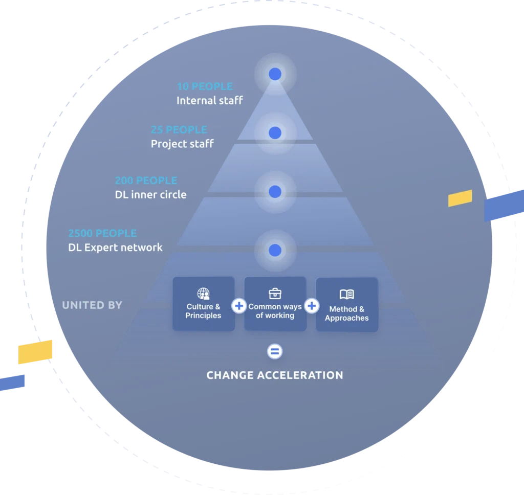 Our selection of partners is reflecting our holistic approach. We believe that successful innovation requires experts from very different domains such as strategy, design, IT/software development, culture and organizational design who are working collaboratively together in order to create sustainable change. We are all driven by the passion to evolve – individually and as a collective.